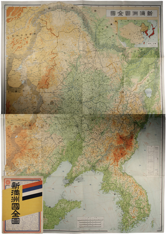 新満州国全図 価格: 16,500円(税込) 袋付 108×77cm 彩色大々版 昭和16 |